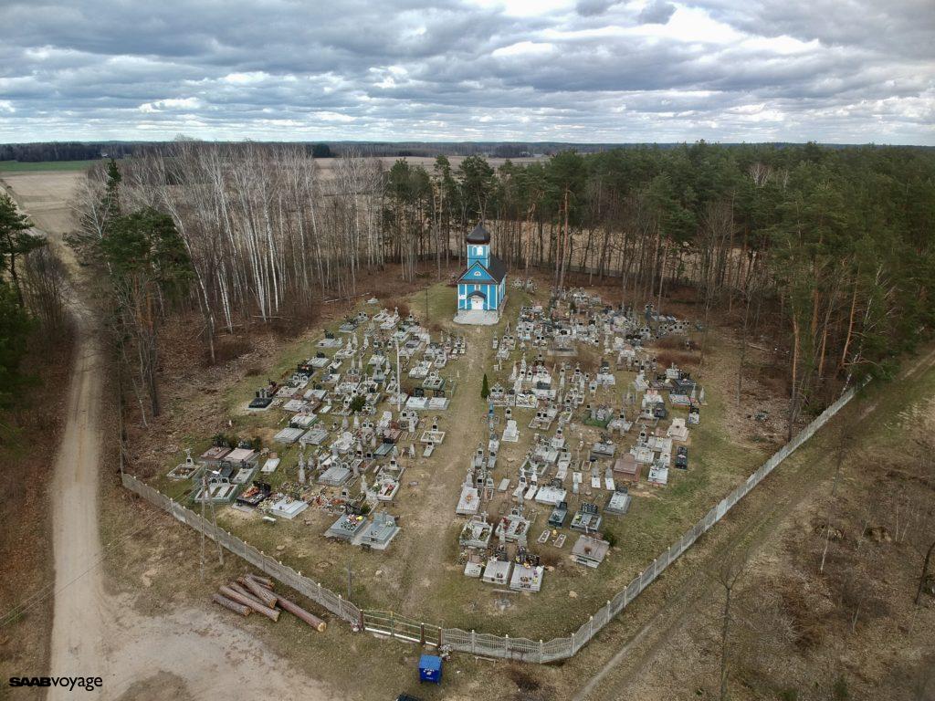 Kolejną cmentarną cerkiew znajdziemy na uboczu — już za wsią.