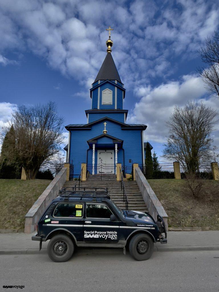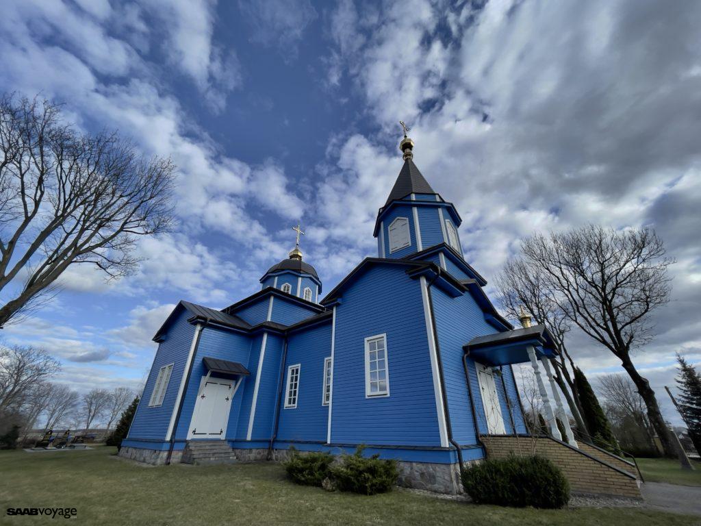 Cerkiew, która nie jest niebieska! Ale za to ma niebieskie zwieńczenie wieży i niebieską cebulę. Powstała pod koniec XIX wieku. W sam raz na 5 minut oglądania, 3 zdjęcia i jazda dalej.