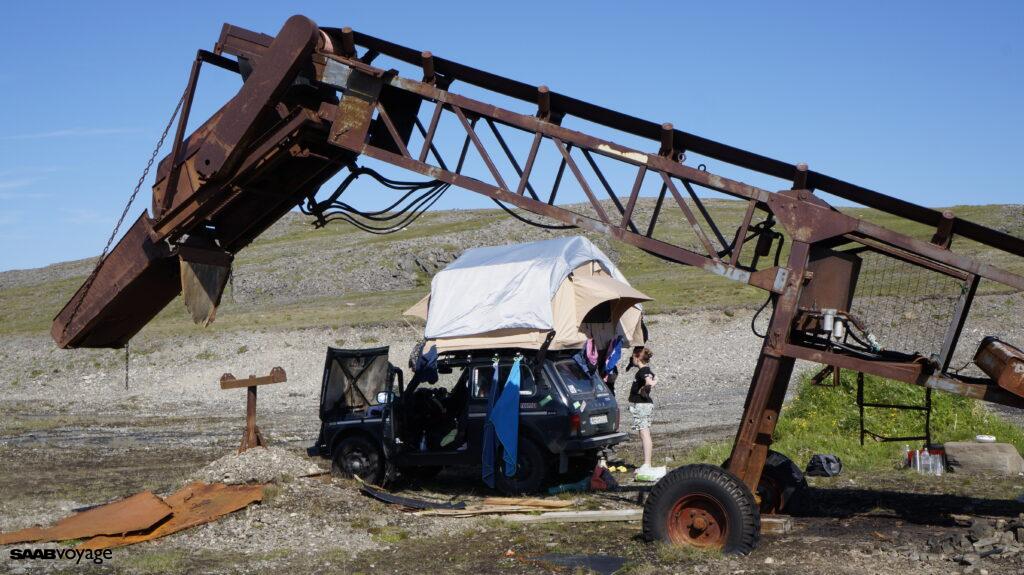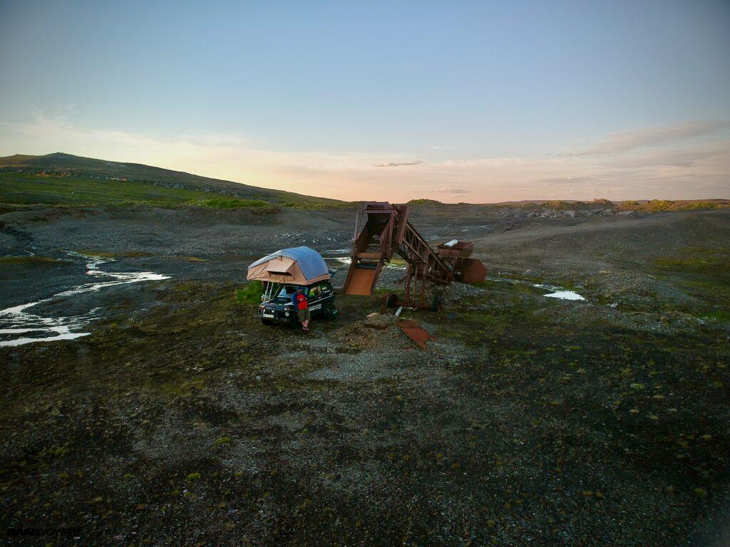 W końcu zjechaliśmy z drogi i zatrzymaliśmy się w środku niczego, przy rdzewiejącym sprzęcie budowlanym. Było warto, rano przyszły do nas renifery.