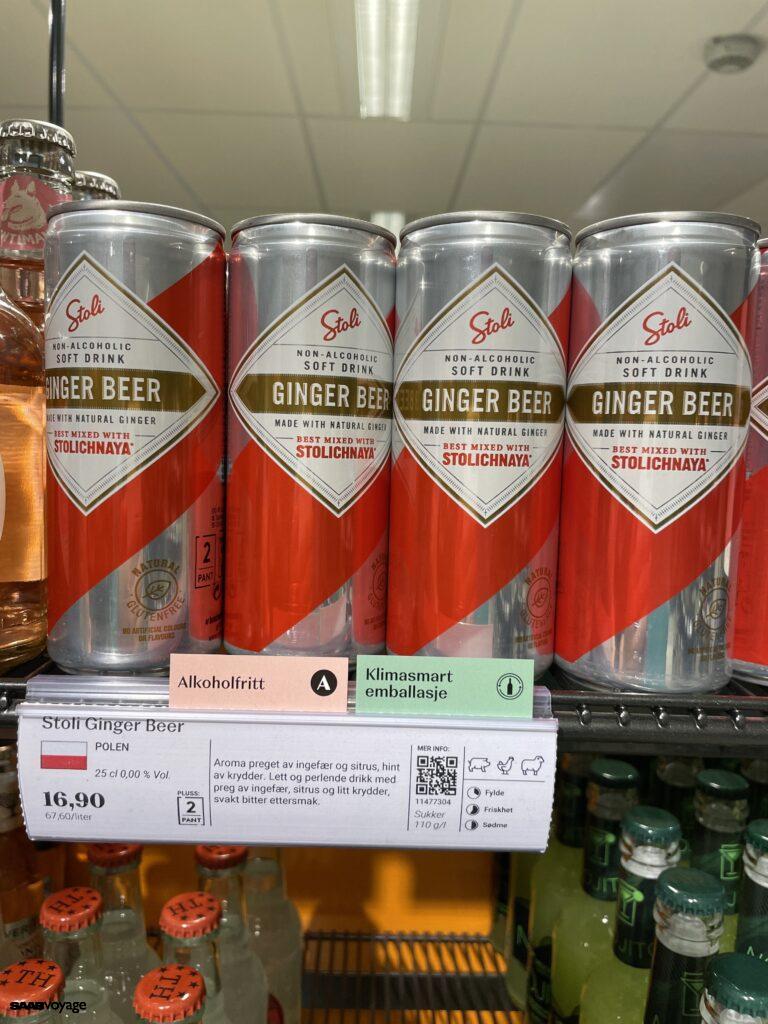 Następnym celem była Lakselva. W przewodniku z 2011 była wzmianka, że w tej miejscowości znajduje się najbardziej wysunięty na północ zakład produkujący wino. Ale niestety w lokalnym sklepie z alkoholem nikt nic nie wiedział, a pod podanym w przewodniku adresem też nic nie było. Z ciekawostek w tymże sklepie znaleźliśmy lokalne polskie specjały. Zupełnie nam nieznane (piwo imbirowe do picia z wódką Stoliczną). Mimo że na puszce faktycznie wymieniony był producent z Łodzi. Wniosek z tego taki, że informacje w przewodnikach mają skłonność do dezaktualizacji.