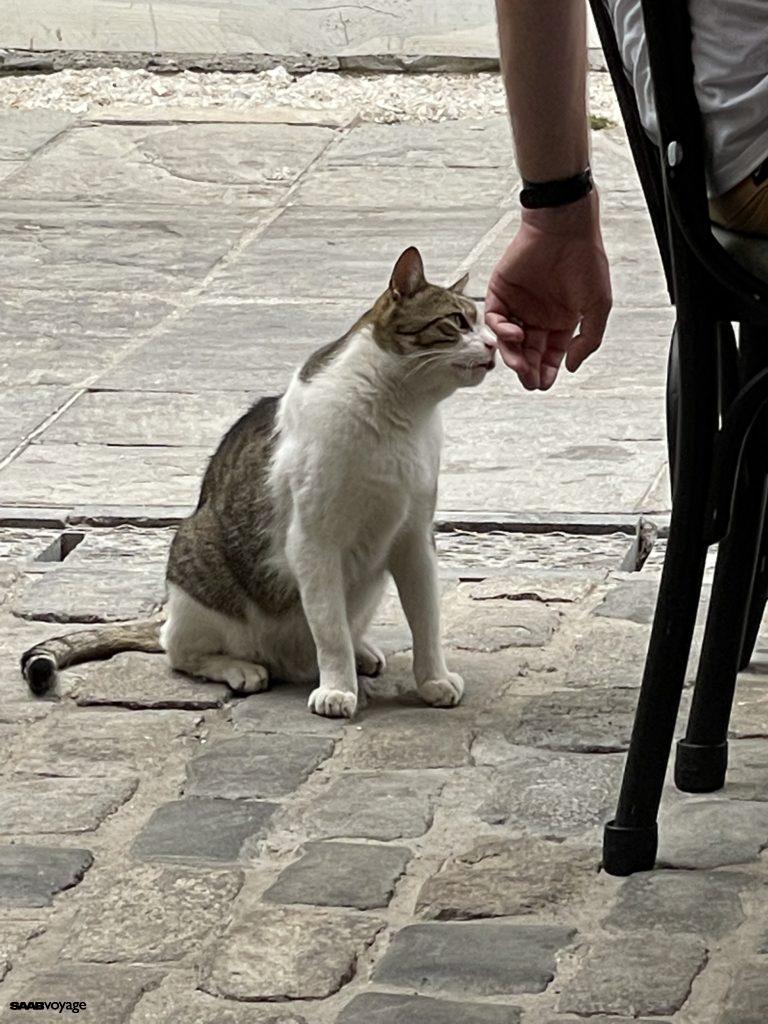 W Salonikach wszędzie były koty (jak się potem okazało, koty są w całej Grecji). Zauważyliśmy, że są karmione przez mieszkańców kocim jedzeniem. Ale raczej nie mają czułych opiekunów, którzy w razie czego zaniosą do weterynarza.