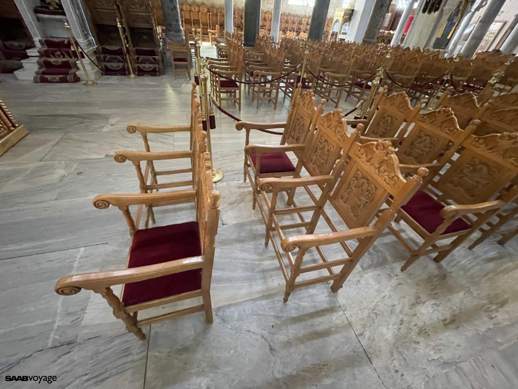 W kontekście covida poruszyło nas to, że w bazylice św. Dymitriosa, co drugie krzesło miało wyjęte siedzisko. Tak, żeby faktycznie trzeba było zachowywać dystans. Jakie to proste i skuteczne.