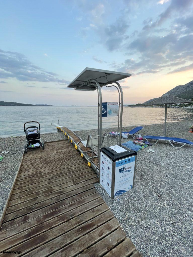 Zajechaliśmy do jednej z wielu niewielkich miejscowości nad morzem. Widok u nas niespotykany: podjazd umożliwiający wjechanie do morza osobom poruszającym się z pomocą wózka. Ciekawe czy i kiedy będzie to u nas możliwe.