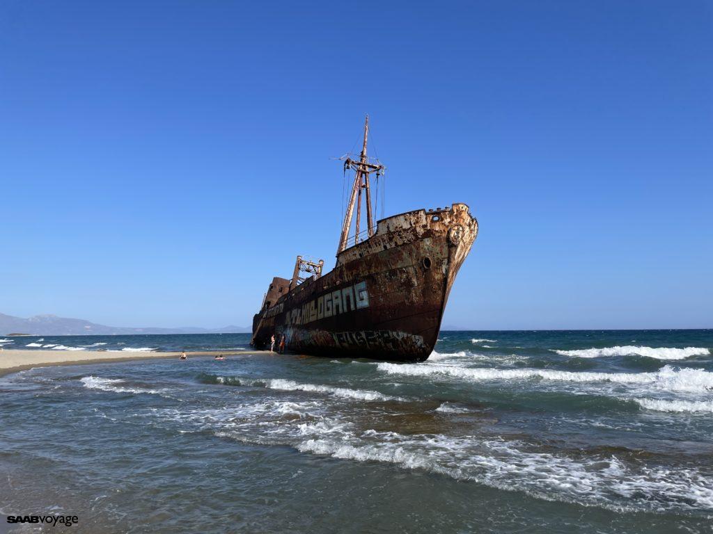 Tu jest miła zatoczka z piaszczystą plażą. Jej ozdobą jest wrak statku.