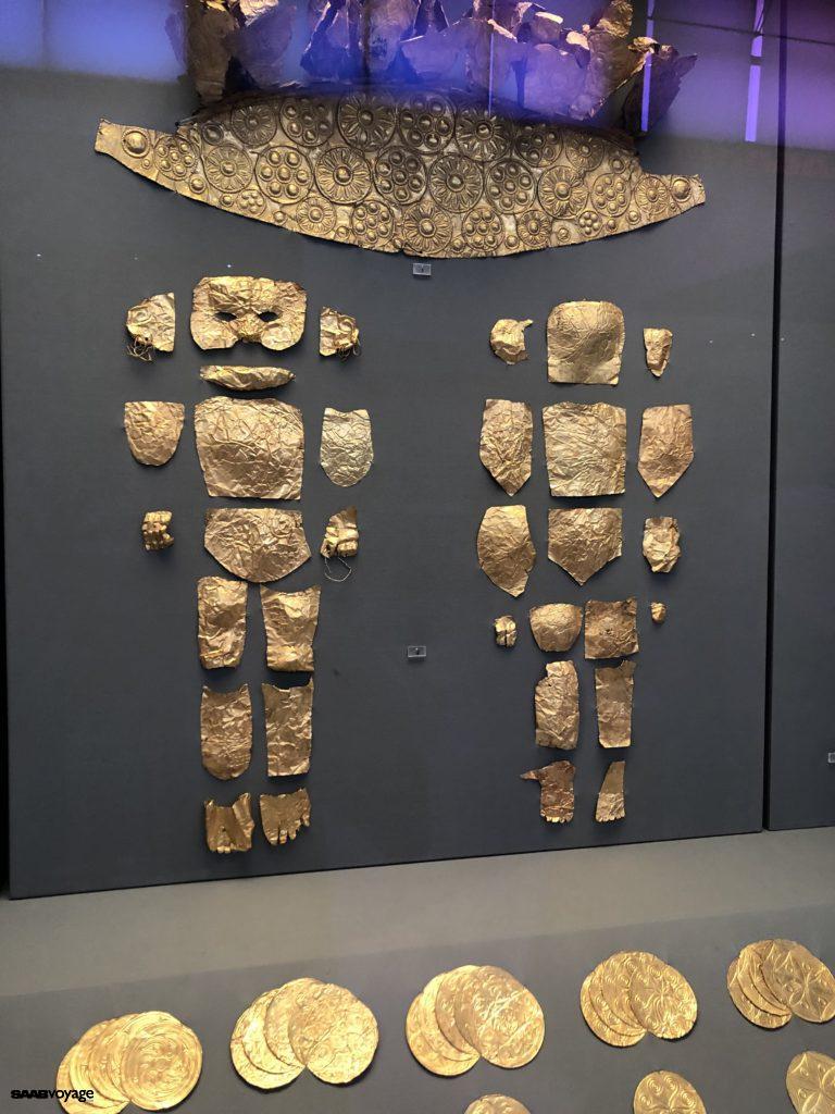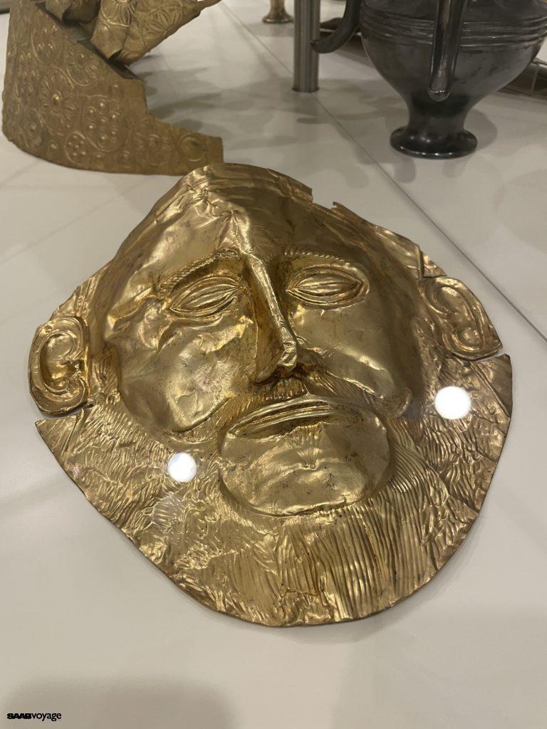 W sumie w Mykenach odnaleziono 14 kg złota. Tutaj w muzeum archeologicznym (standardowo, w każdym ciekawym miejscu jest muzeum i stanowisko archeologiczne, to stały układ) znajdują się kopie złotych artefaktów, a także inne wyciągnięte z grobowców władców przedmioty. Oryginały znajdują się w muzeum archeologicznym w Atenach, o którym napiszemy później.