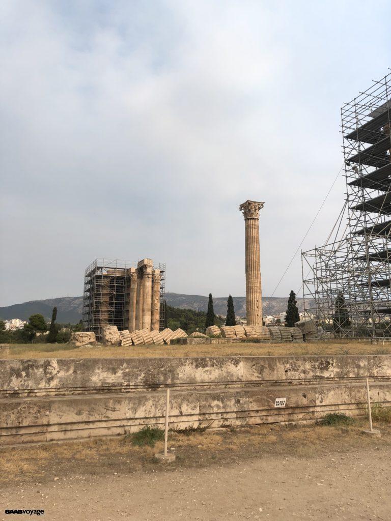 Świątynia Zeusa to takie trochę smutne miejsce. Była budowana przez ponad 600 lat, a potem gdy się rozsypała, została rozgrabiona przez okoliczną ludność i niewiele z niej zostało. Oryginalnie miała 108 kolumn. W środku była kopia posągu Zeusa dłuta Fidiasza, posągu który moglibyśmy zobaczyć w Olimpii, gdyby tam wciąż był.