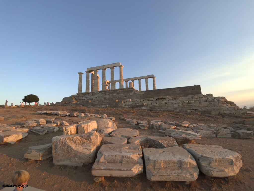 Z Koryntu pojechaliśmy do Aten, ale zanim tam dotarliśmy, odwiedziliśmy Sunion. Znajduje się tam świątynia Posejdona, która wygląda szczególnie malowniczo w czasie zachodu słońca.